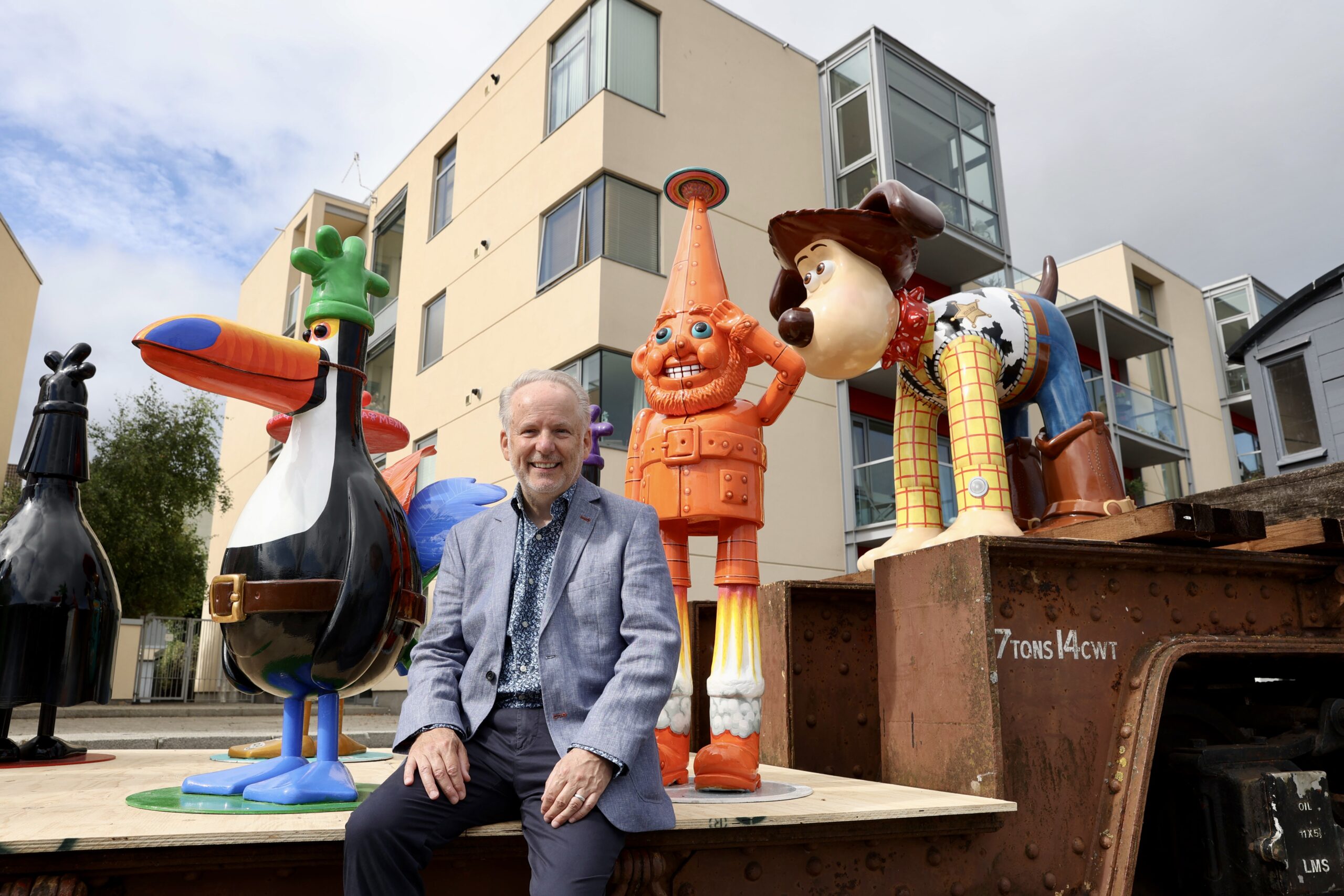 Driven by Wallace & Gromit creator Nick Park, the train carried a dozen unique character sculptures into the city to mark the start of Gromit Unleashed 3.