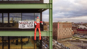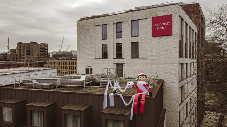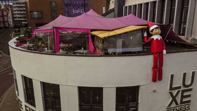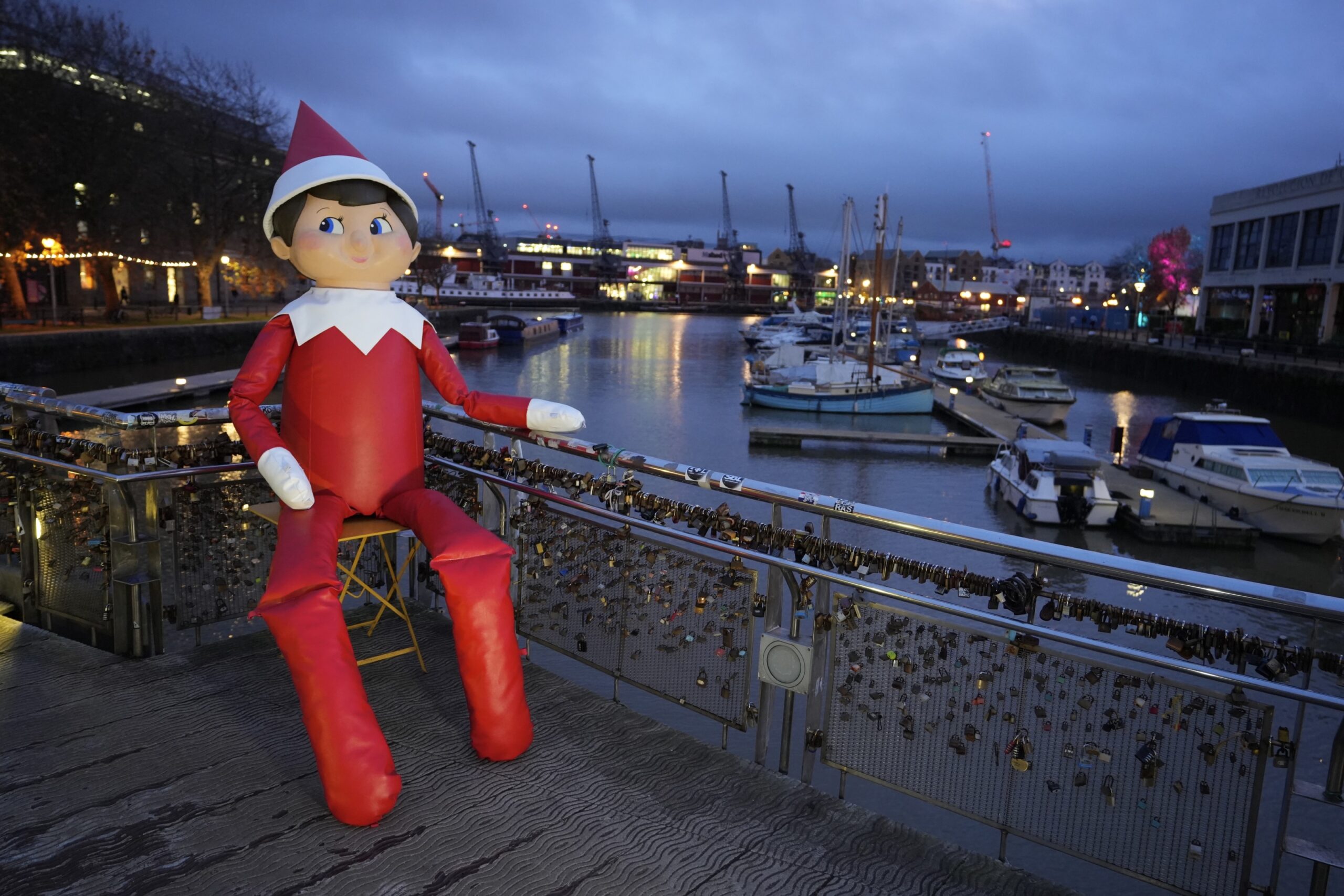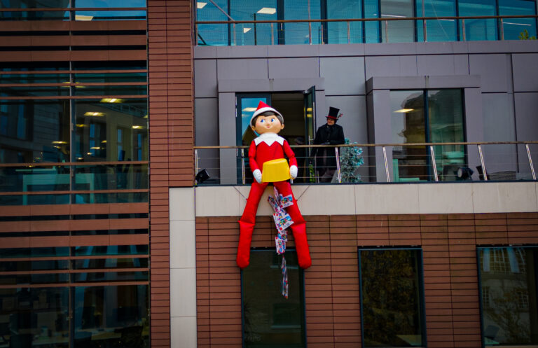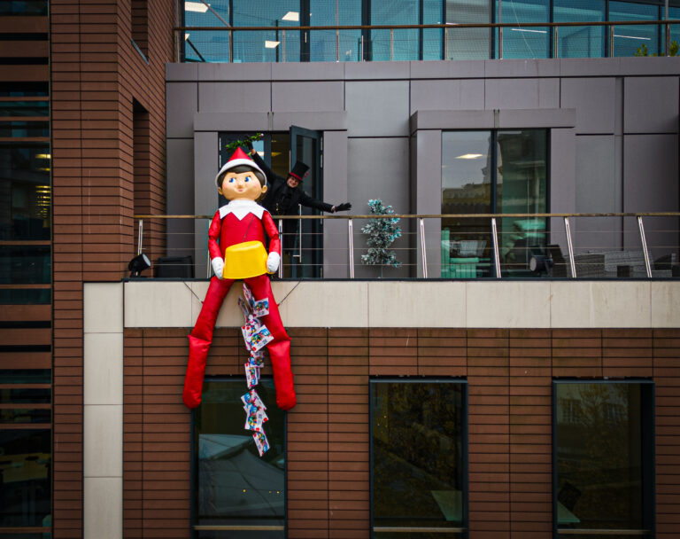The enormous 15 ft tall The Elf on the Shelf, wearing the iconic red suit and hat with white trim, white collar and mittens, appeared atop several of the city’s buildings. From some of the city’s highest vantage points, The Elf on the Shelf was the perfect early present to kids throughout Bristol, who were be delighted to spot the elf in a larger-than-life game of hide and seek.